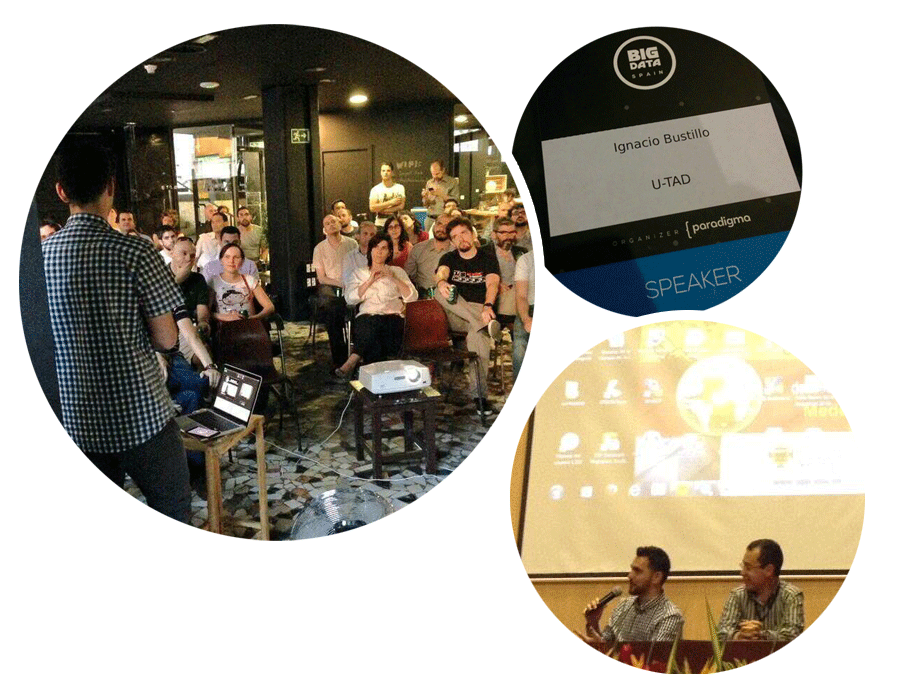 Además, es profesor del Master de BigData de la U-TAD en el cual imparte clase de Integración de datos Big Data y tutoriza proyectos de fin de máster los cuales buscan introducir a los alumnos en situaciones reales de análisis de grandes cantidades de datos.